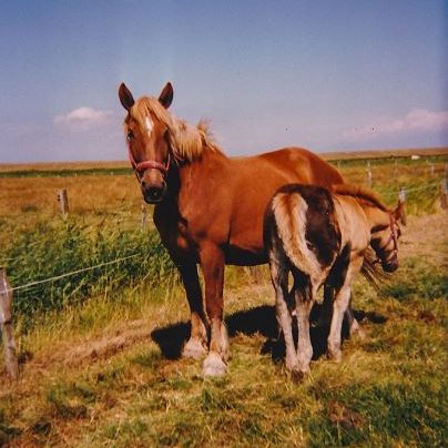 ... das war die Aussage meines Vaters, als er mit dem Finger aus dem Fenster zeigte. Gegenüber des Wohnhauses wurden auf der Weide große kräftige blonde Pferde mit Behang abgeladen. Wir Mädchen (3 unter 5 Kindern) waren von jeher pferdebegeistert und uns war erstmal egal welches Pferd oder Pony es geben würde - Hauptsache ein Pferd oder Pony! Wir, auch unsere Eltern, waren von den Kaltblüter, die im Schleswiger typischen Trab über die Weide "flogen", verzaubert. So kam es, dass wir Mädchen unseren Vater regelmäßig an seine Aussage erinnerten und er doch solch ein Pferd kaufen könne, ohne eine Ahnung zu haben, um welche Rasse es sich handelte...